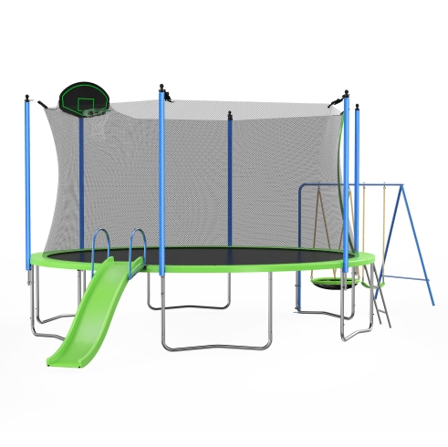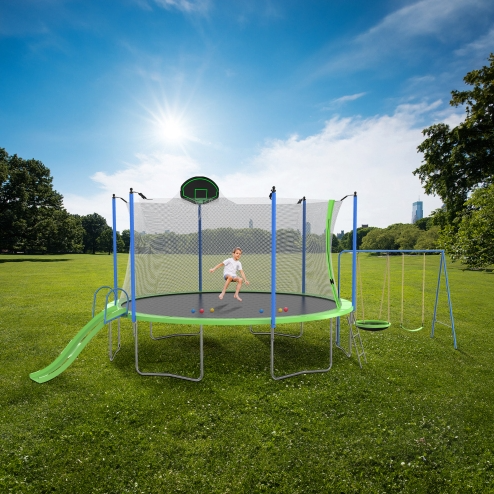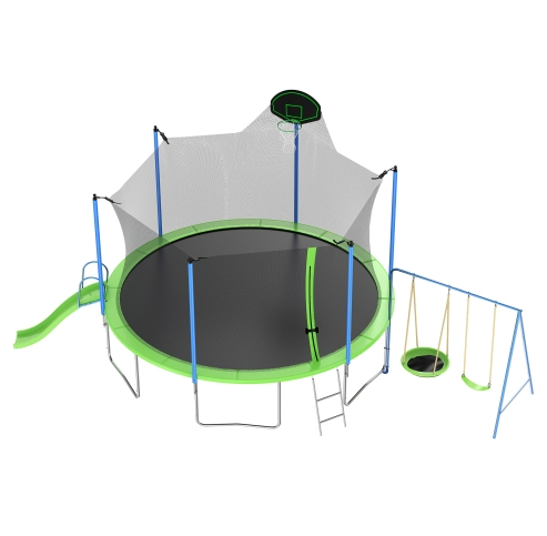 12FT Trampoline With Slide And Swings With Basketball Hoop And Ladder And Net