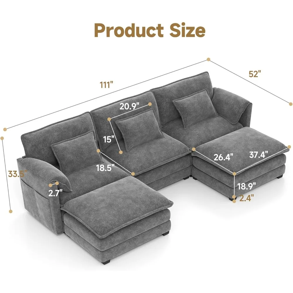 Modular Sectional Sofa Convertible Couch with Movable Ottoman,6 Pillows and 2 Armrest Pillows